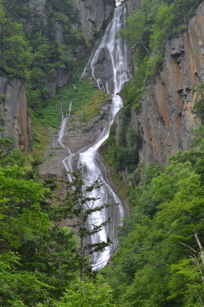 ここから車で数分のところに有名な滝があるというので行ってみました。駐車場の目の前に「流星の滝」がありました。その少し左には「銀河の滝」という滝もありました。崖のてっぺんの岩の裂け目から水が垂直に、途中少し左右に向きを変えながら流れ落ちています。これほど近くに二つの滝が並んでいるというのも珍しいです。是非お立ち寄りを。