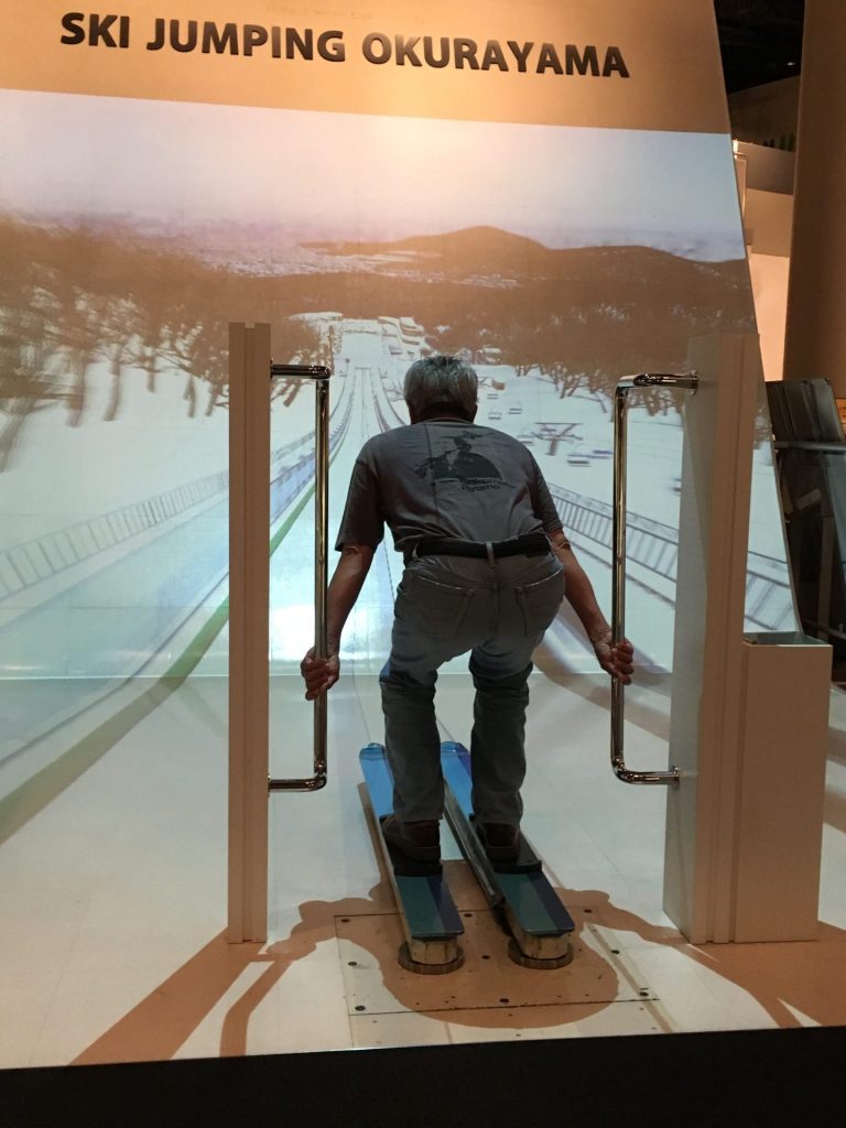 *大倉山ジャンプ競技場:駐車場から長いエスカレーターで上ったところにありました。ジャンプ台の左手にリフトがあって、これに乗って頂上まで行くことができます。スタート地点の後方から下を見ると、想像以上の傾斜であることに驚かされます。オリンピックミュージアムは、何層にもなった建物内の空間がうまく利用して展示されていました。スケートやジャンプの体験スポットもあるので大人も子どもも楽しめますよ。