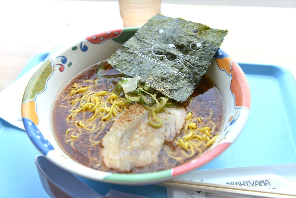 ということで、レストランに入ってお昼にすることに。メニューには「あさひやま」の名が付いたラーメンがあったので注文してみました。たしかに名前が入っていました、やや大きめの海苔に。味はいたって普通の醤油ラーメンでした。でも、美味しかったですよ。