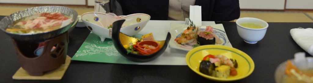 昼食は、高知城近くにある三翠園でとりました。なぜ、急にこんな贅沢をし始めたのかと申しますと、以前、結婚式のお祝い返しで頂いた食事券を持ってきていたからです。これを使って電話で予約しておいたのです。豪華なメニューでしたので、本当ならここで一杯、と行きたかったのですが、あくまでもこれは昼食。お茶で我慢することにして早々に済ませ、温泉に入りました。お昼の時間帯でしたので人がほとんどおらず、広々とした湯船を独り占め。ここに泊まることにしておけば良かったと、後悔の念は拭えませんでした。フロントでお礼を言って駐車場に出てみると、歴史を感じる建物が目に入りました。説明の看板には、「旧山内家下屋敷長屋跡」とありました。元々、歴史のある場所に建てられたホテルだったということがこの時に初めて分かりました。