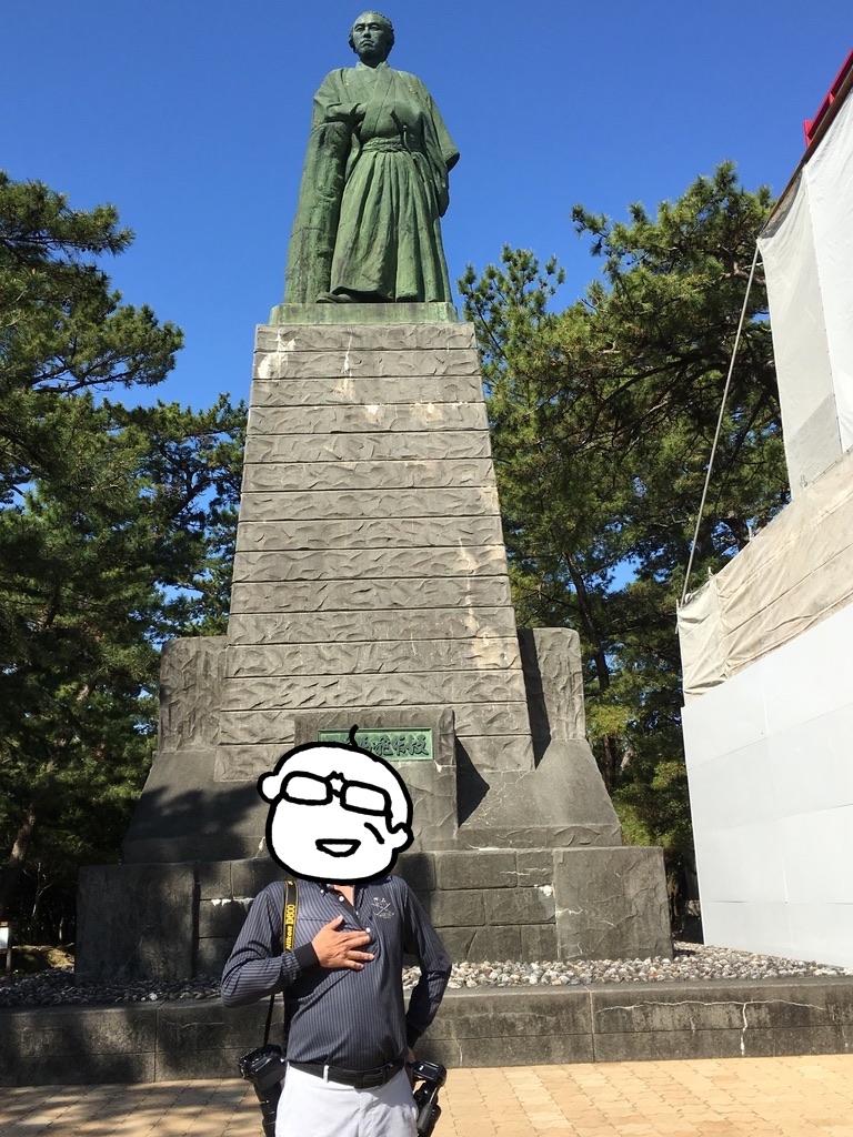 絶好のお天気に恵まれ、これ以上はないほどの観光日和。広い駐車場に車を停めて、まずは、坂本龍馬像の前で記念撮影。階段をしばらく下って、いよいよ桂浜へ。真っ青な空と海、そして、真っ白な砂浜。砂浜には、人の姿が全く無く、ほぼプライベートビーチ状態でした。まぶしいくらいの日射しの中、浜沿いの遊歩道やら砂浜をのんびりのんびり。桂浜の向こう端に見える龍王宮は改装工事のため見学できませんでした。浜から坂道を上って龍馬記念館へ。桂浜と記念館はお勧めの観光スポットですね。