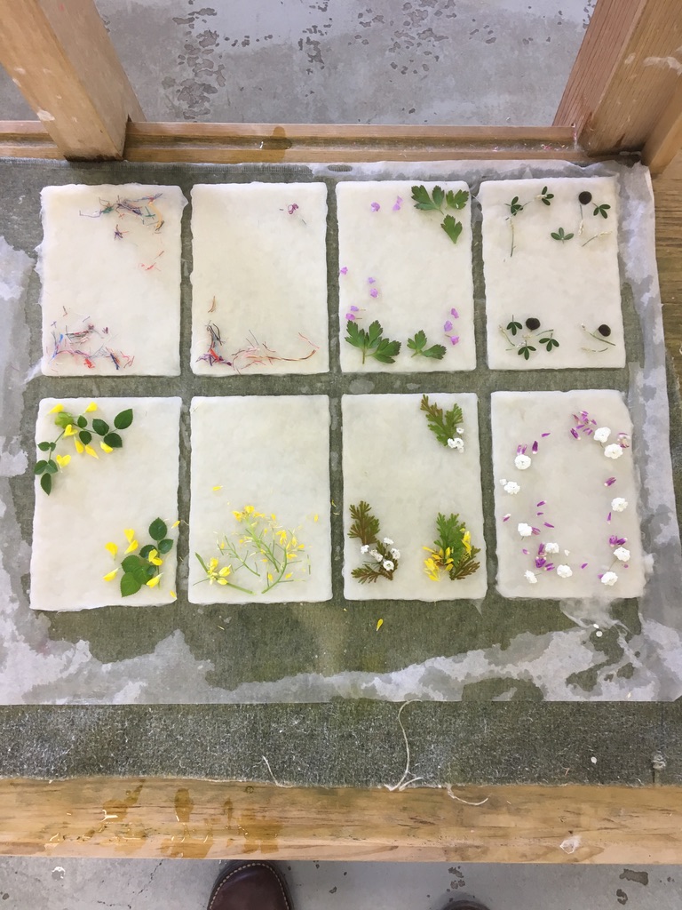 道の駅「土佐和紙工芸村」に到着したのが午後3時頃。トイレを確認してから直売所を一巡り。その後、レストランがあるというのでメニューをチェックしに行ったが、残念ながらやっていない時間帯。和紙漉き体験ができることを教えていただき、体験教室で申し込むと、私たちの他にはいなかったのですぐに体験できることになりました。用意してもらってある花や葉っぱを漉き込んで思い思いに数枚の葉書大の和紙漉きに挑戦しました。水を切って乾かすまでに時間が必要だというので、この時間を使って施設の奥の温泉へ。こじんまりした場所ですが、いろいろな施設がぎゅっと詰まった感じで、車中泊には有り難いと感じました。